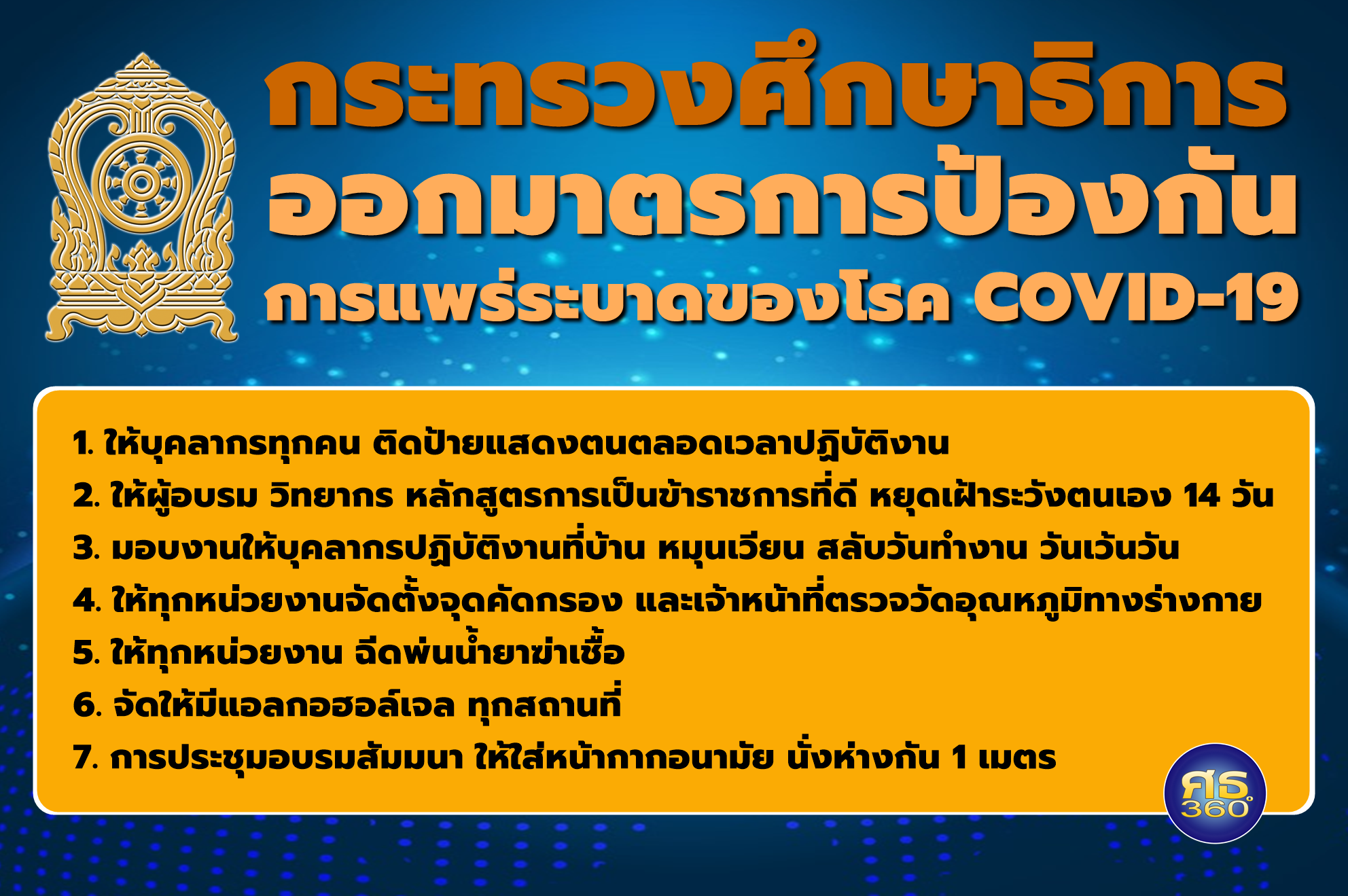 7 มาตรการป้องกันการแพร่ระบาดของโรคติดเชื้อไวรัสโคโรนา 2019 (COVID-19)